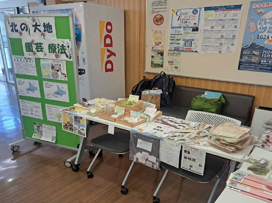 ラベンダーやクラフト作品等を出展、北海道の植物を通して地域の特色を全国に発信、学びと交流を行いました。沖縄や東京など他地域との植物の育ち方の違いについて情報交換が行われ、有意義な交流となりました。